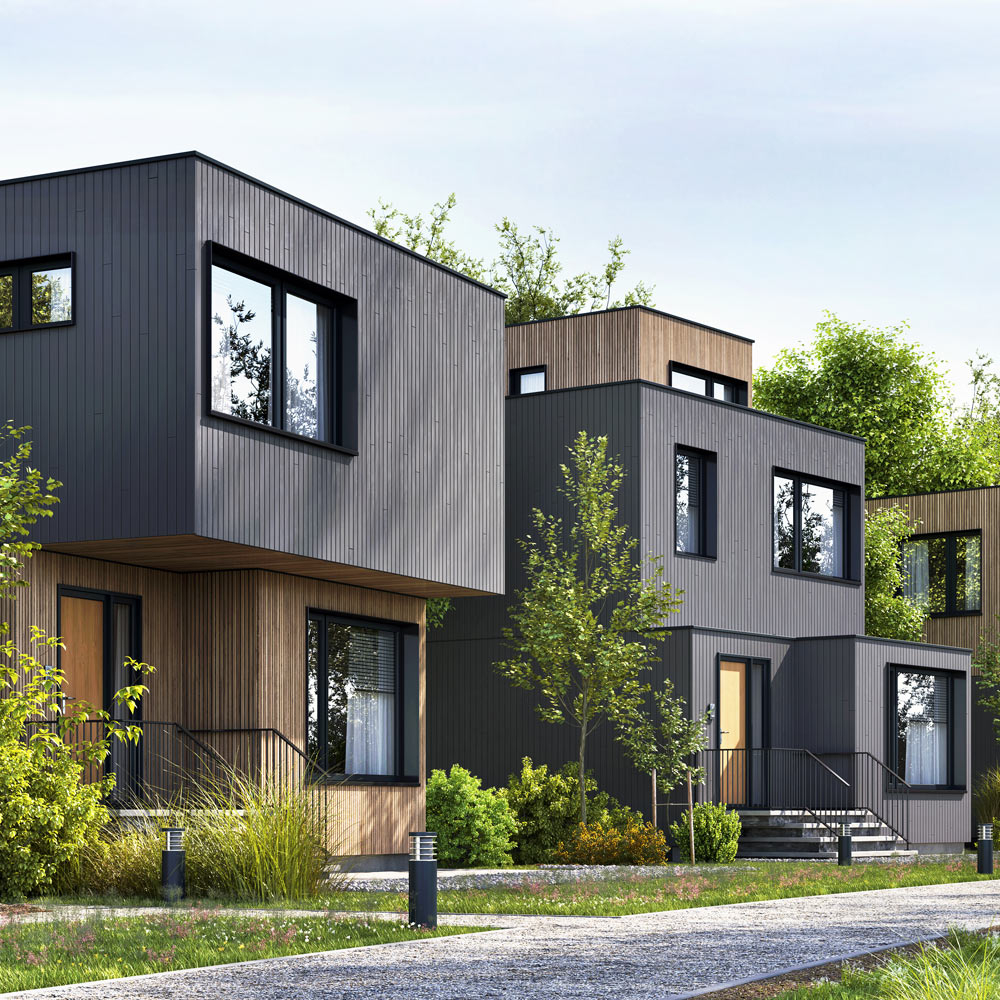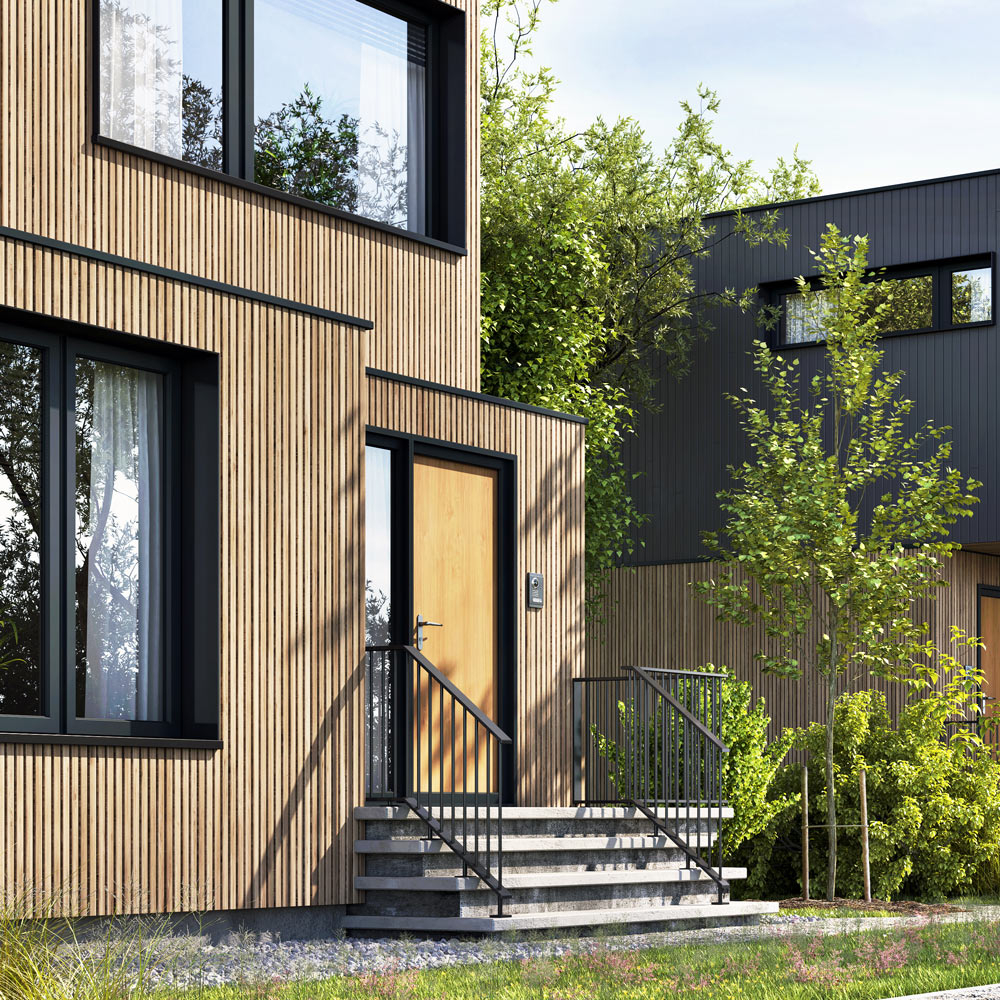 - придомовая зона состоит из парковки и небольшого участка для садовой мебели или гамака.